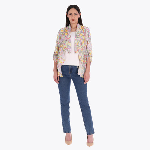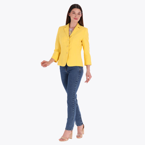 Petite Saco con Solapa con Detalle en Puño Manga 3/4" Tejido Plano