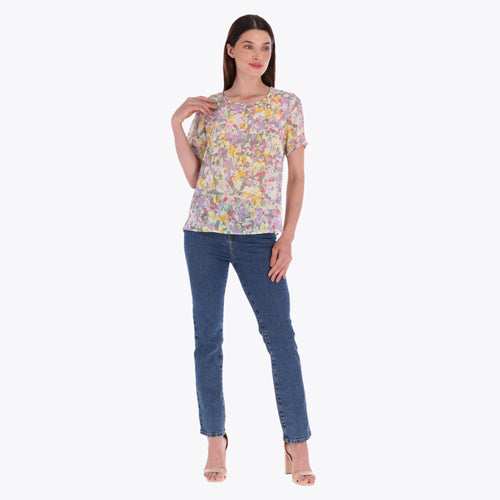 Petite Top Escote Redondo Manga 3/4" Tejido Plano