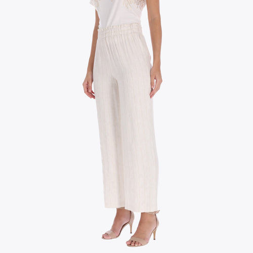 Pantalón con Elástico en Cintura con Adorno de Cinta al Frente y Bolsas a los Costados en Lino
