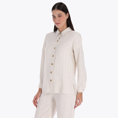 Petite Blusa Camisera Amplia con Bata Tejido Plano