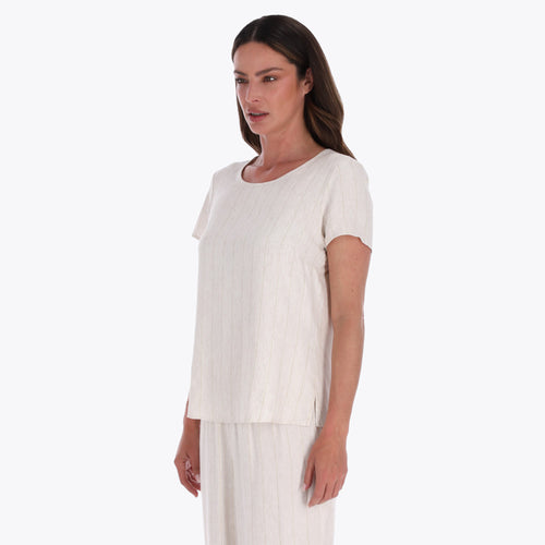 Blusa Escote Redondo Manga Corta Tejido Plano