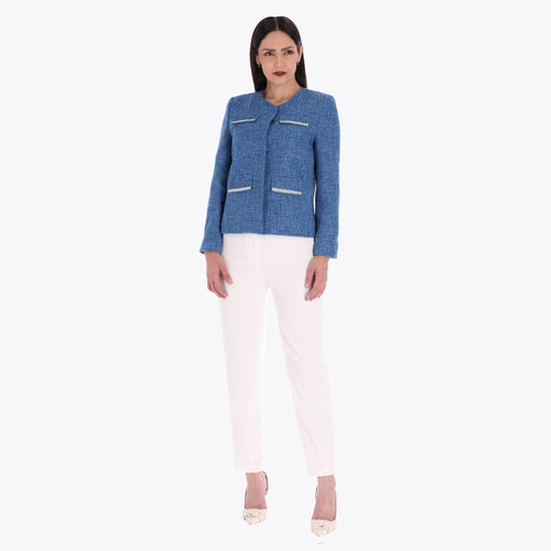 Petite Saco Tipo Chanel con Detalle de Perlas en Carteras Tejido Plano