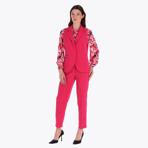 Petite Chaleco con Solapa y Vivos Tejido Plano