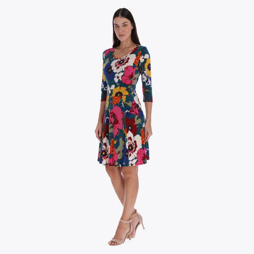 Petite Vestido Escote Redondo Manga 3/4" Tejido de Punto