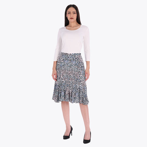 Petite Falda con Cortes y Vuelo en Ruedo Tejido Plano