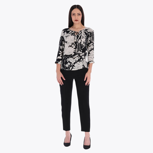 Petite Blusa Manga 3/4" con Detalle de Cintas al Frente Tejido Plano