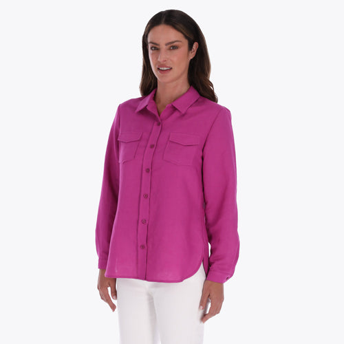 Petite Blusa Camisera Bolsas con Carteras y Tablón en Espalda Tejido Plano