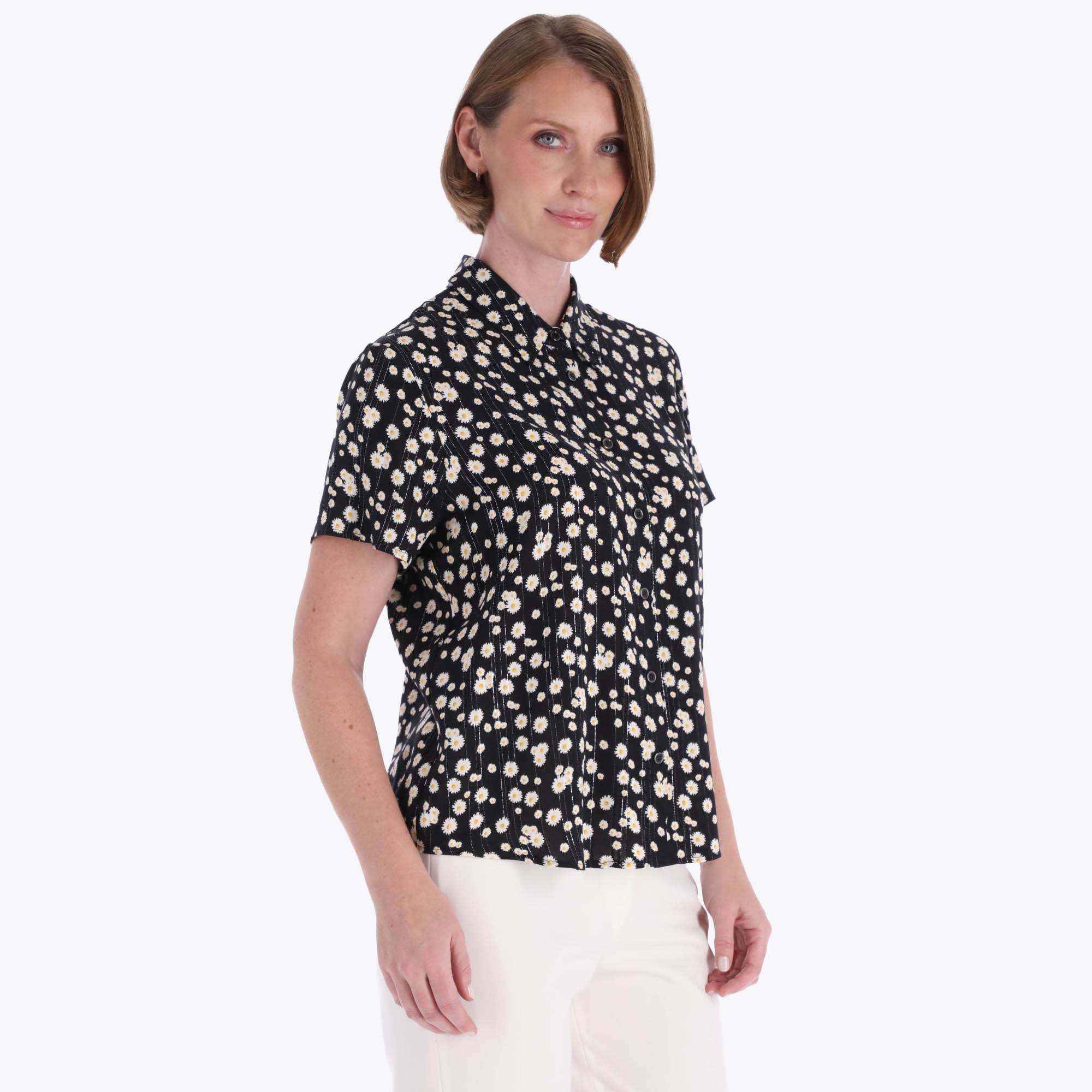 Blusa Camisera Manga Corta Tejido Plano