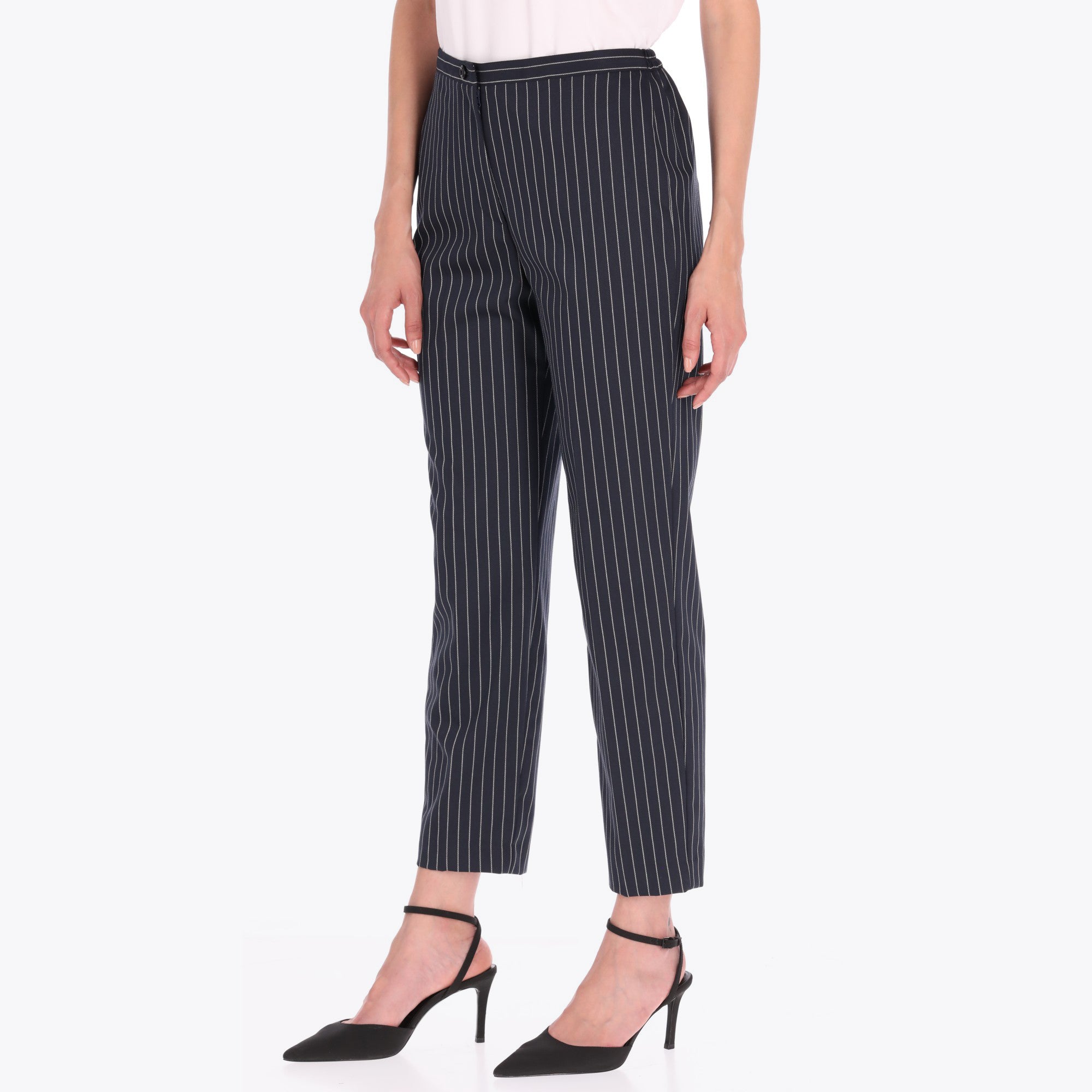 Pantalón en Raya de Gis con Elástico a los Costados y Vivos Tejido Plano