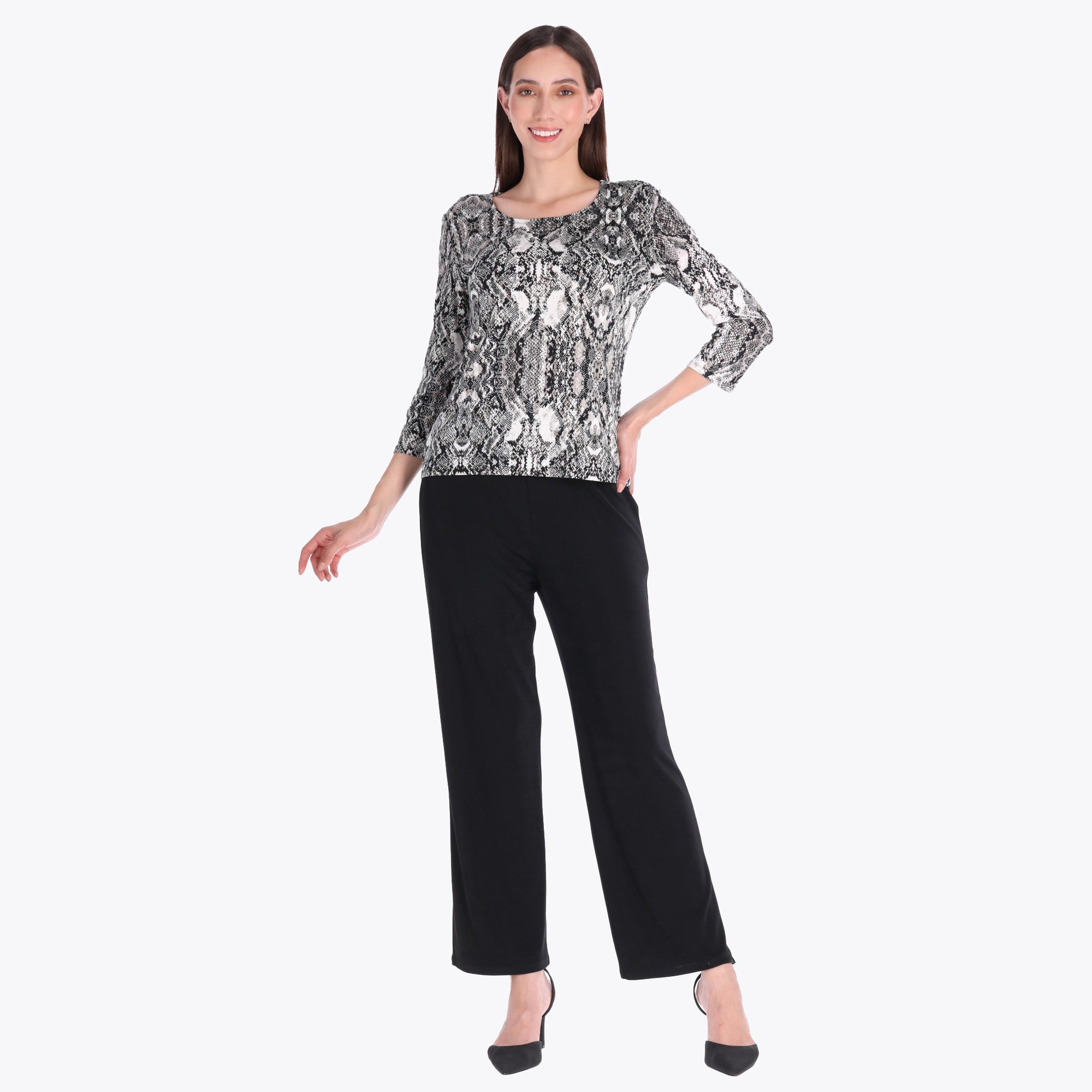 Top Escote Redondo con Manga 3/4" Tejido de Punto