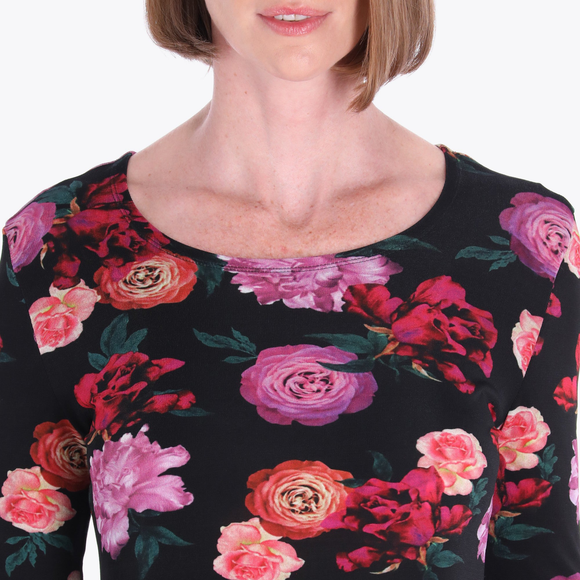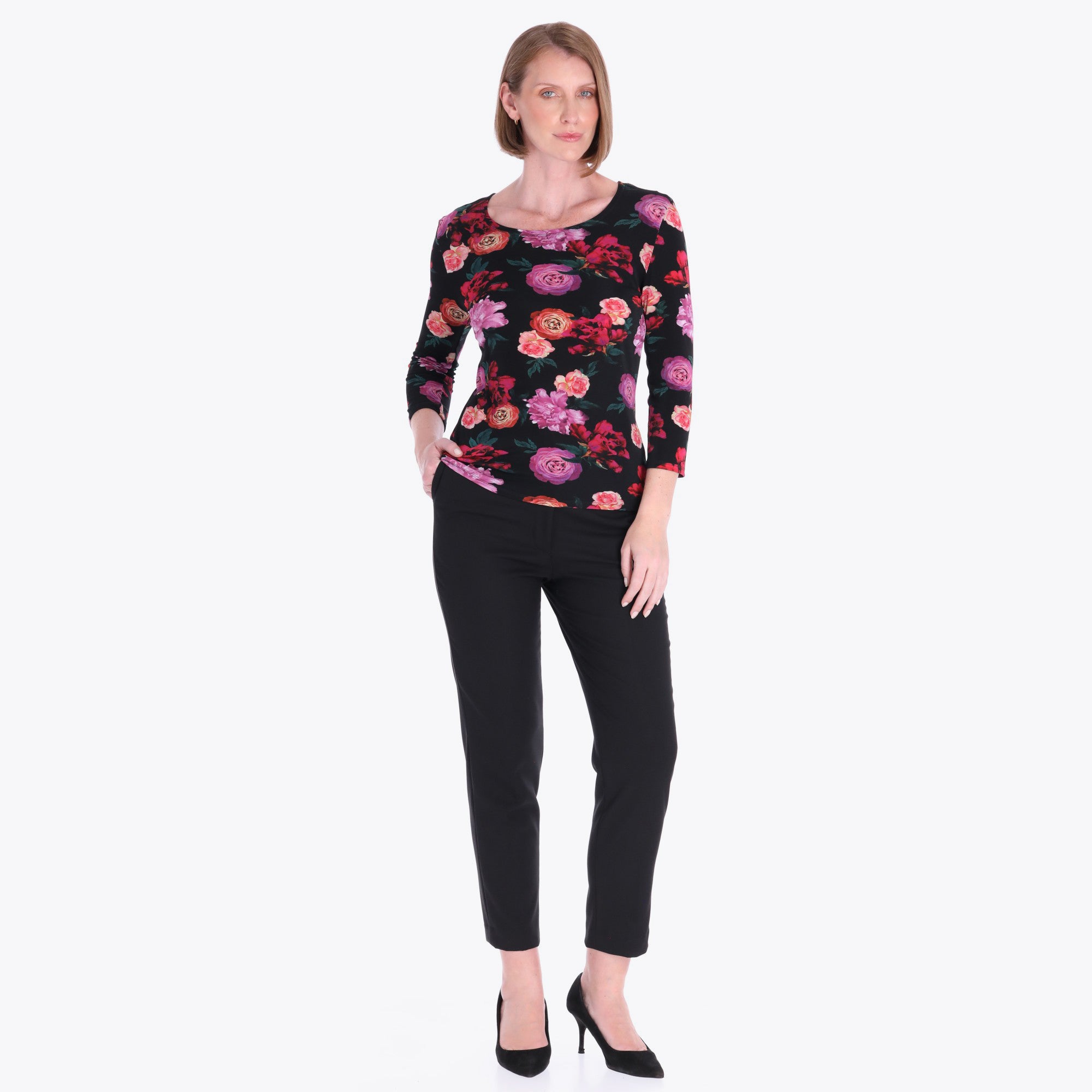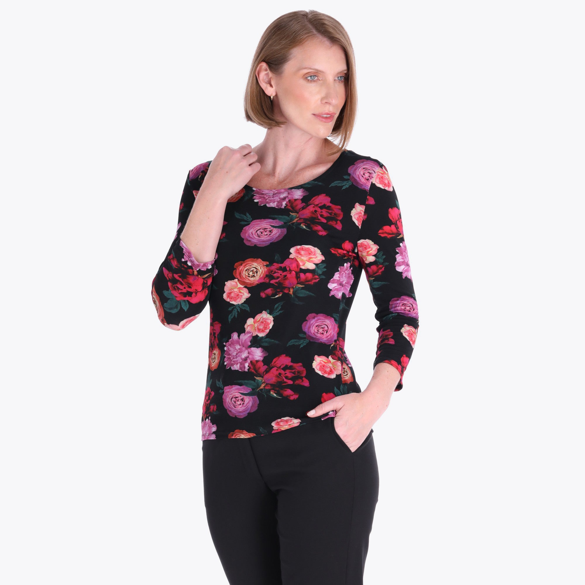 Top Básico Escote Redondo Manga 3/4" Tejido de Punto