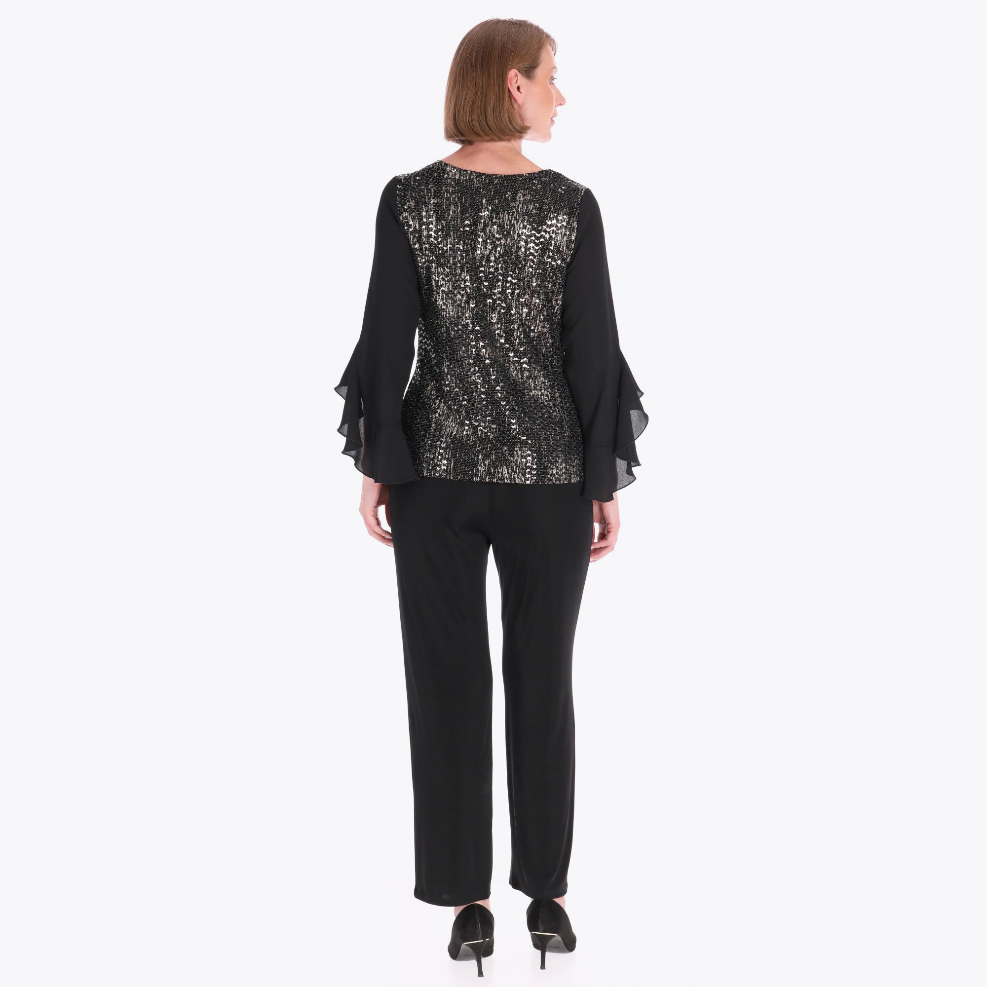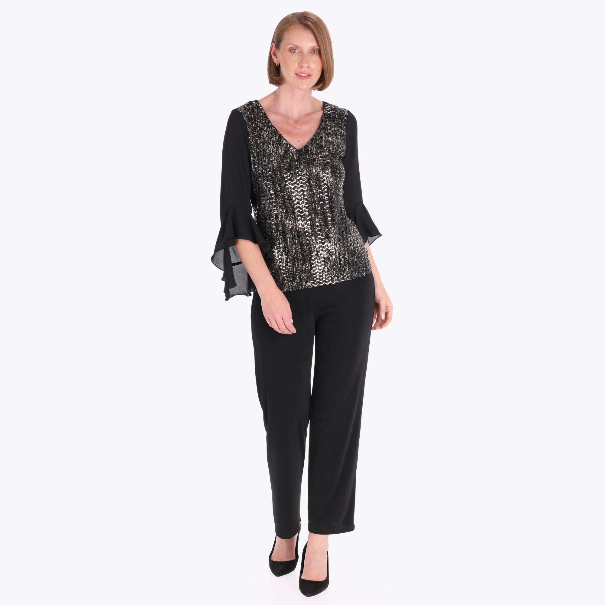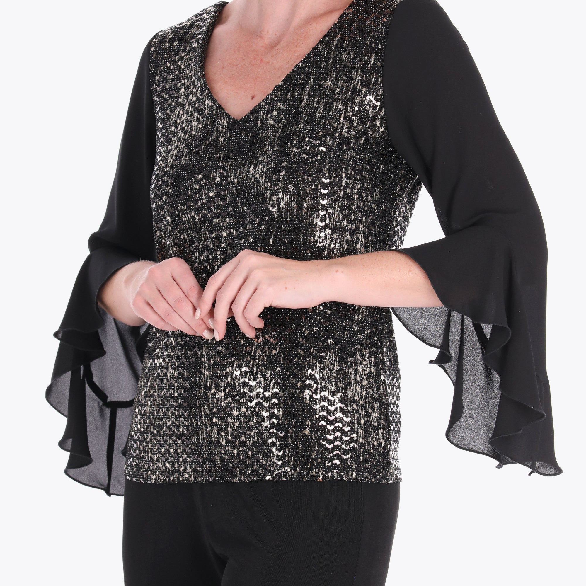 Top Escote en "V" Manga con Escarola Tejido de Punto