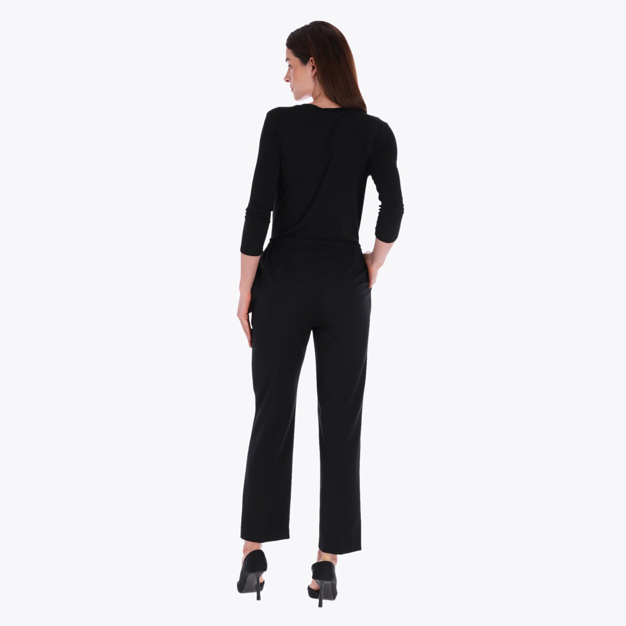 Outlet Pantalón Básico con Elástico en Cinturas y Bolsas en Costados Tejido Plano