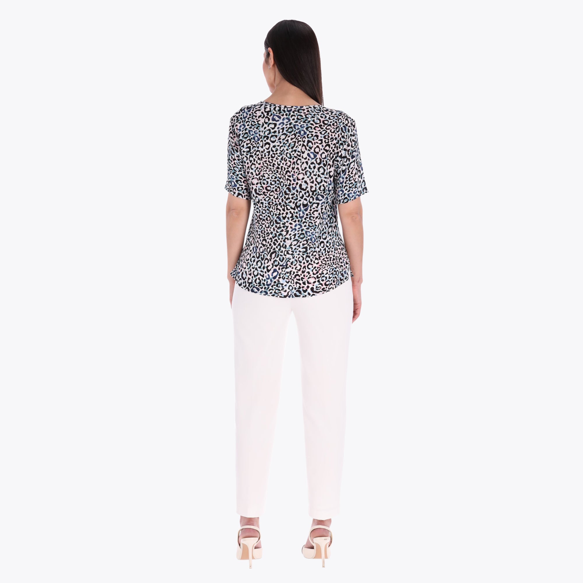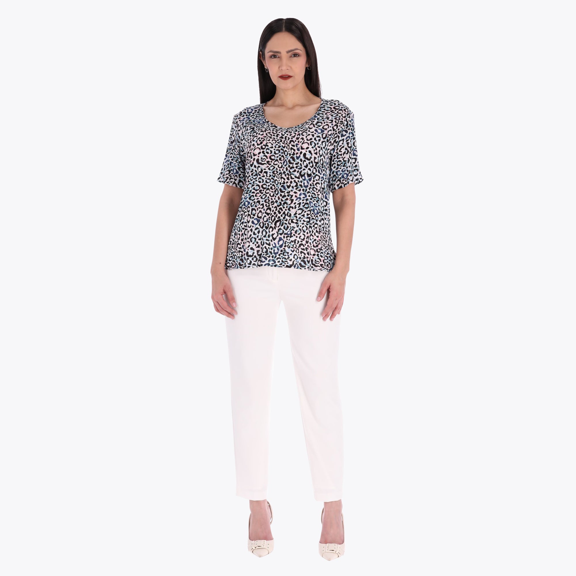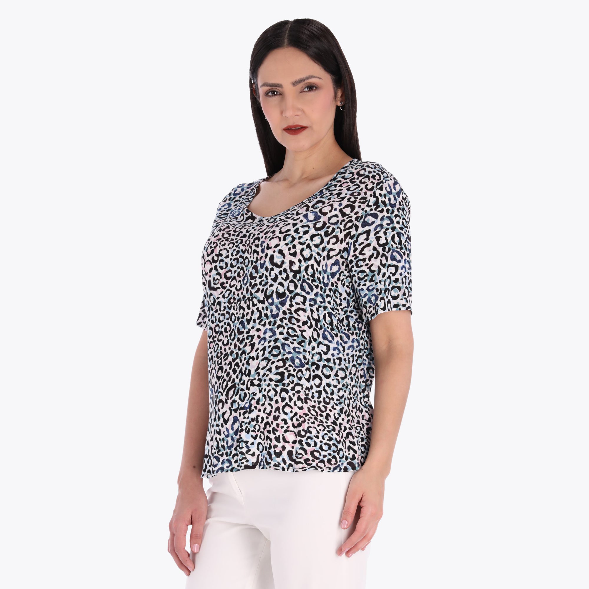 Petite Top Escote Redondo Manga Corta Tejido Plano