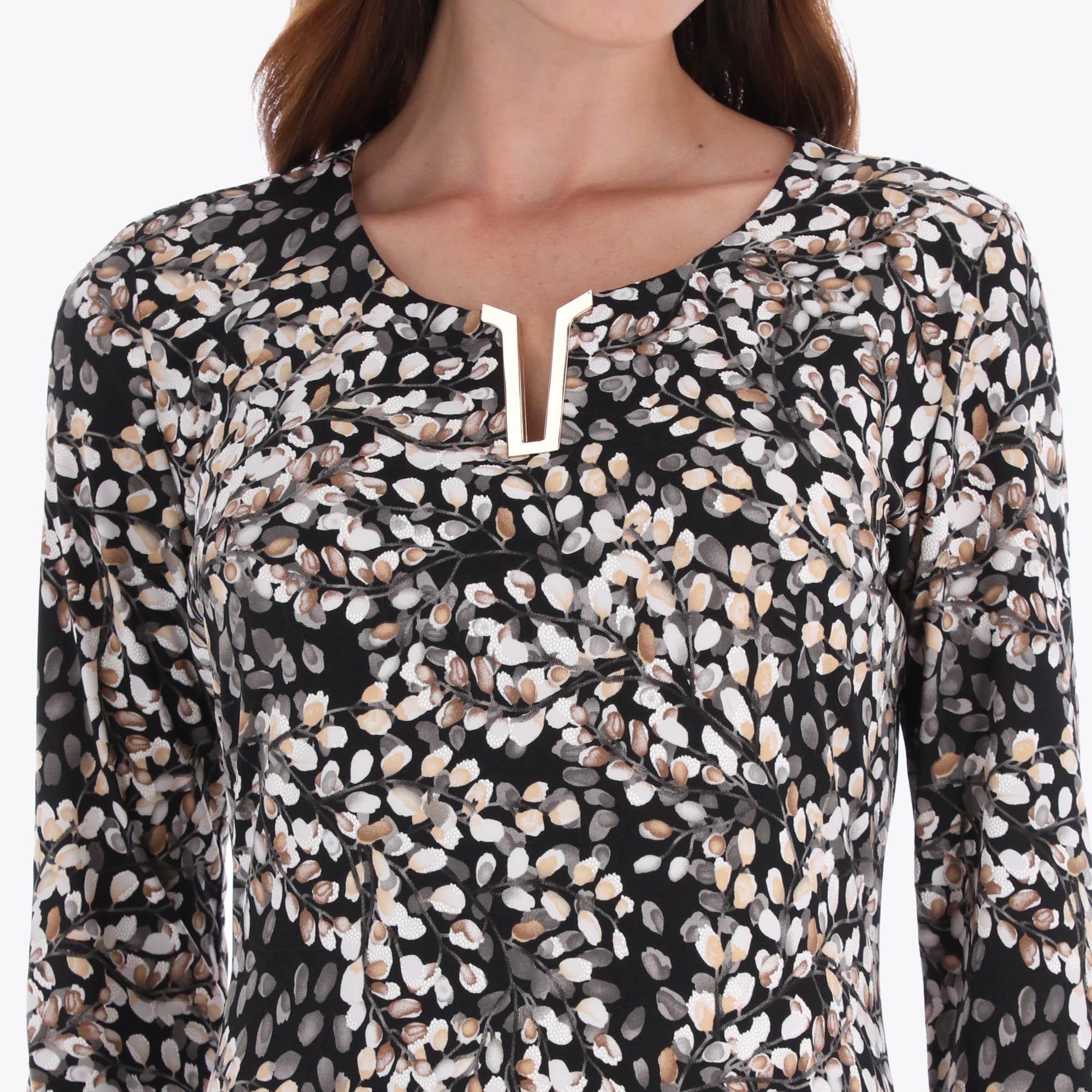 Vestido Camiseta con Herraje Metálico en Escote Tejido de Punto