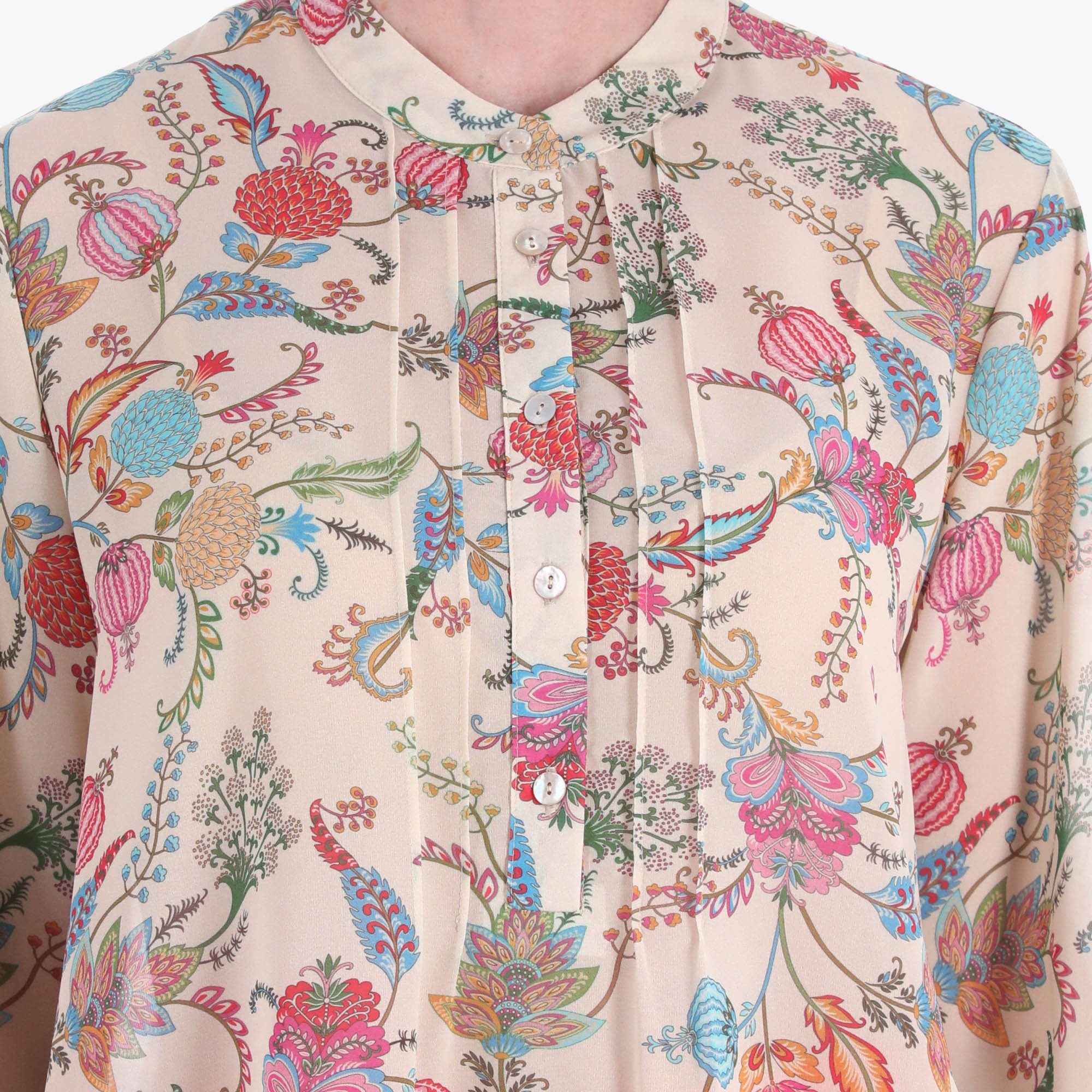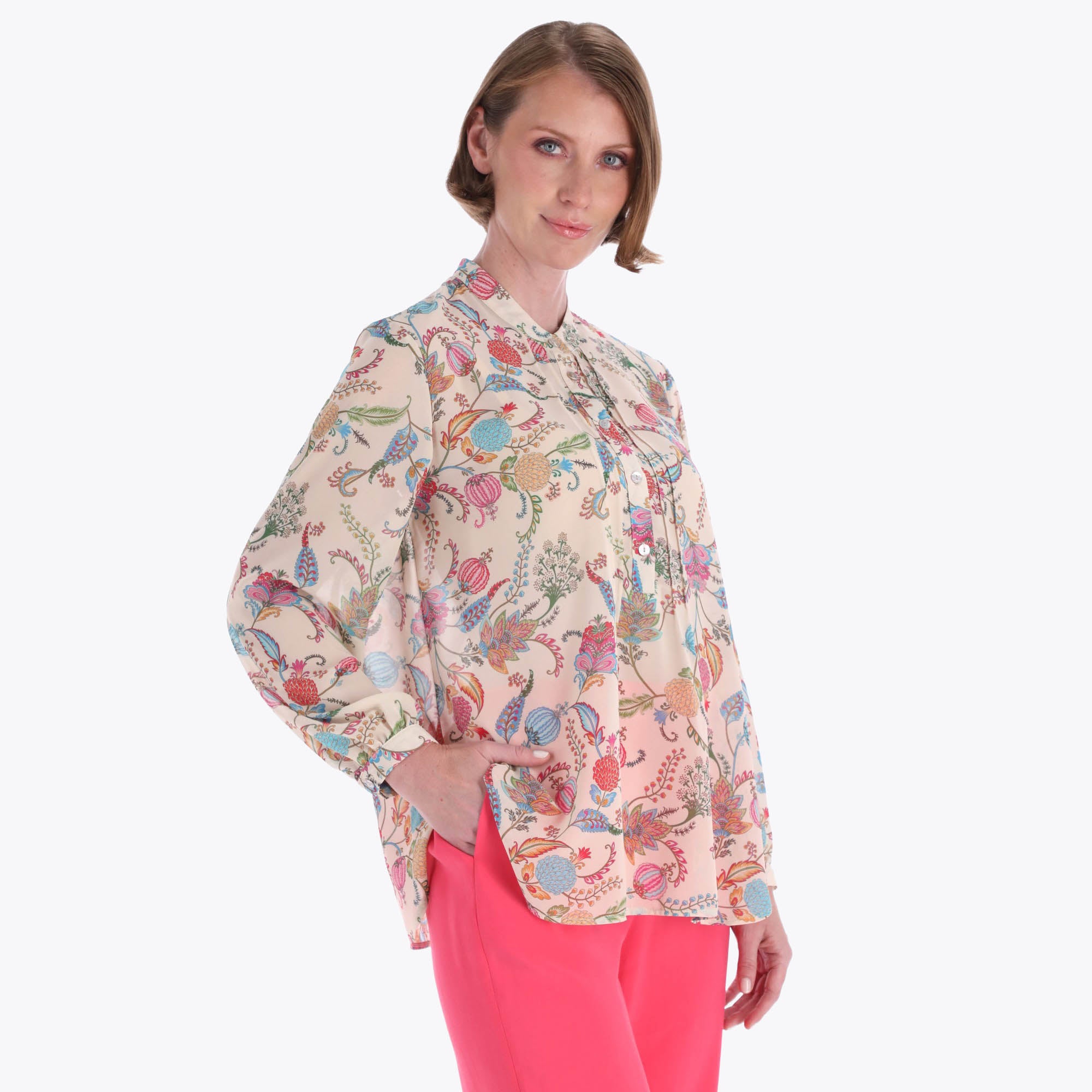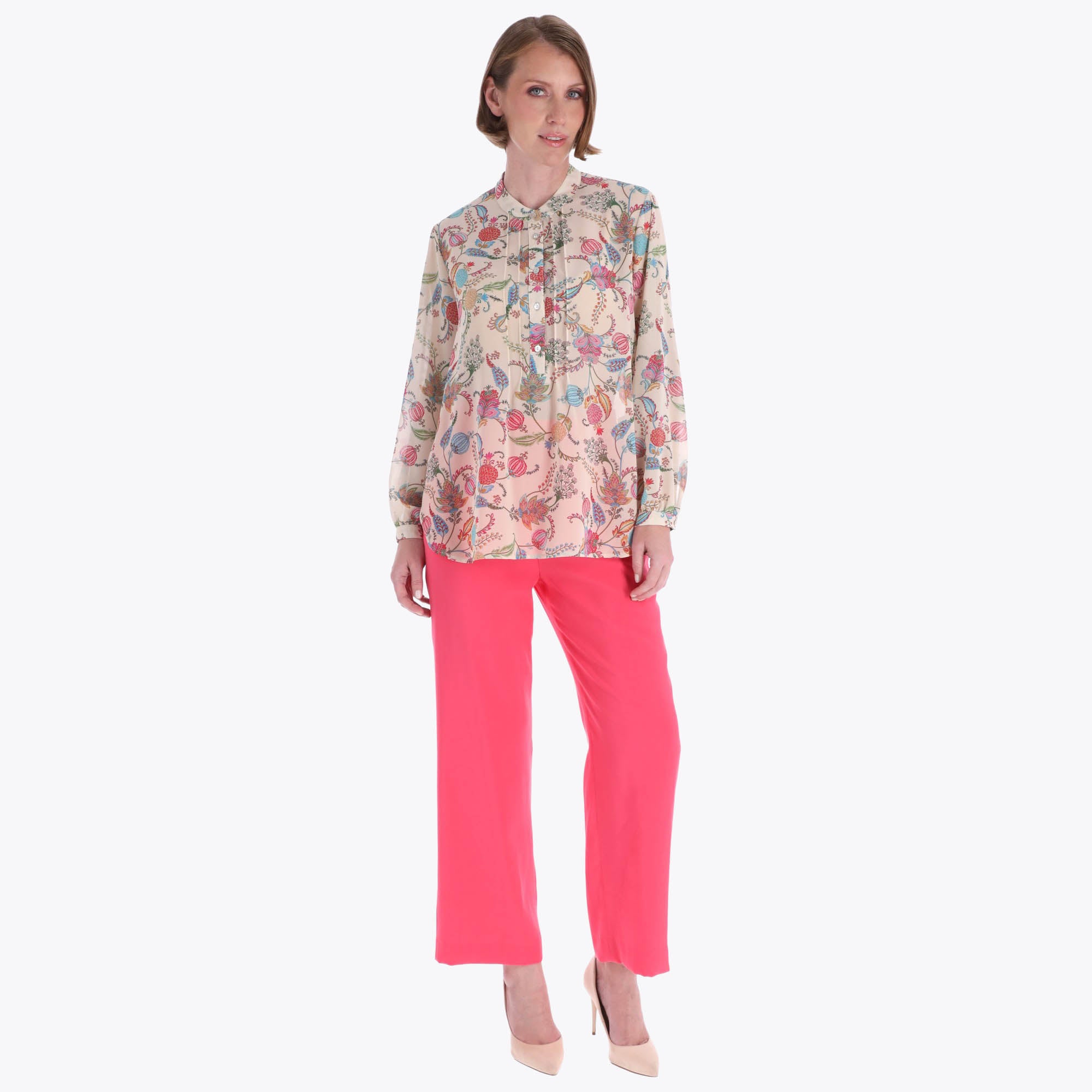 Blusa con Cuello Chino y Alforzas Tejido Plano