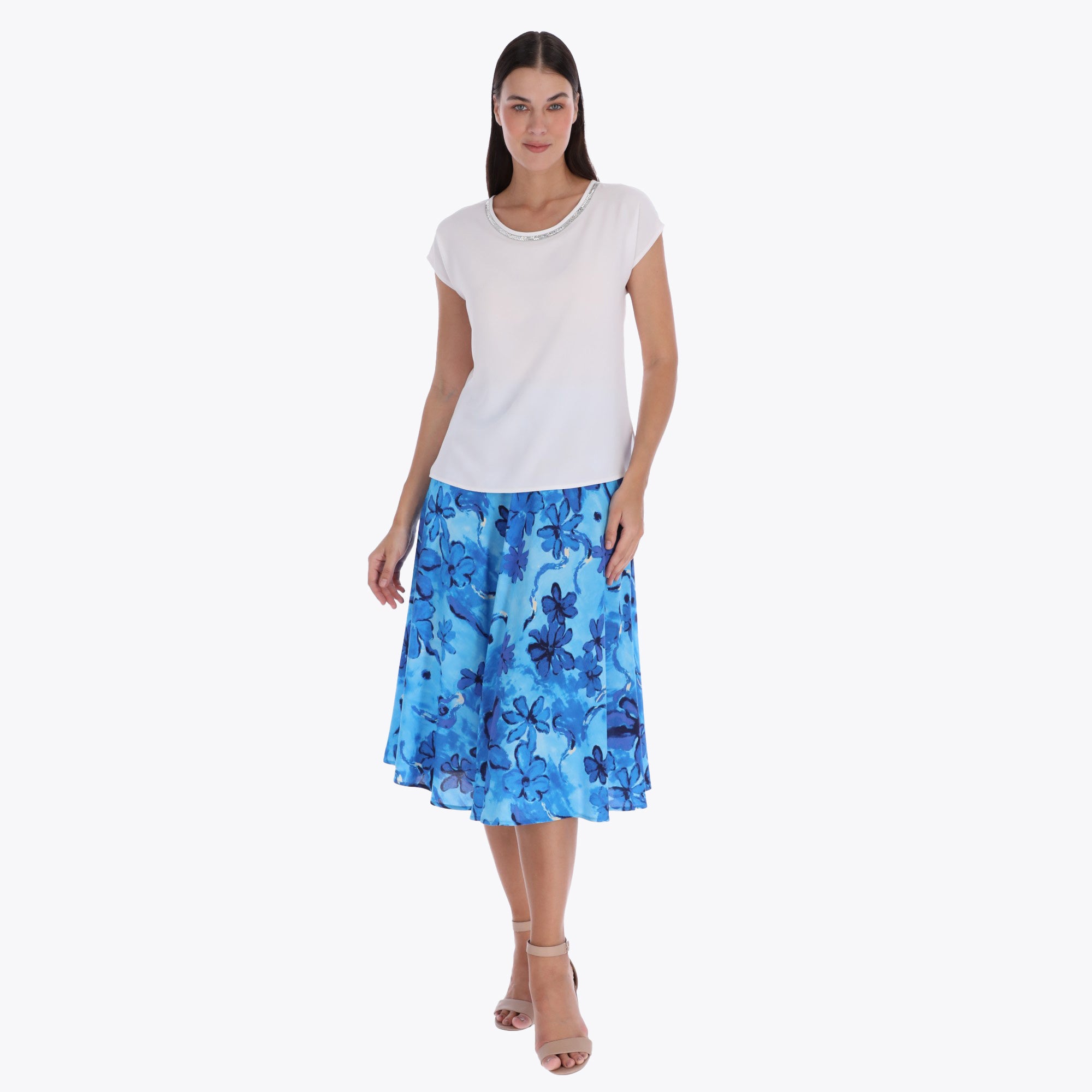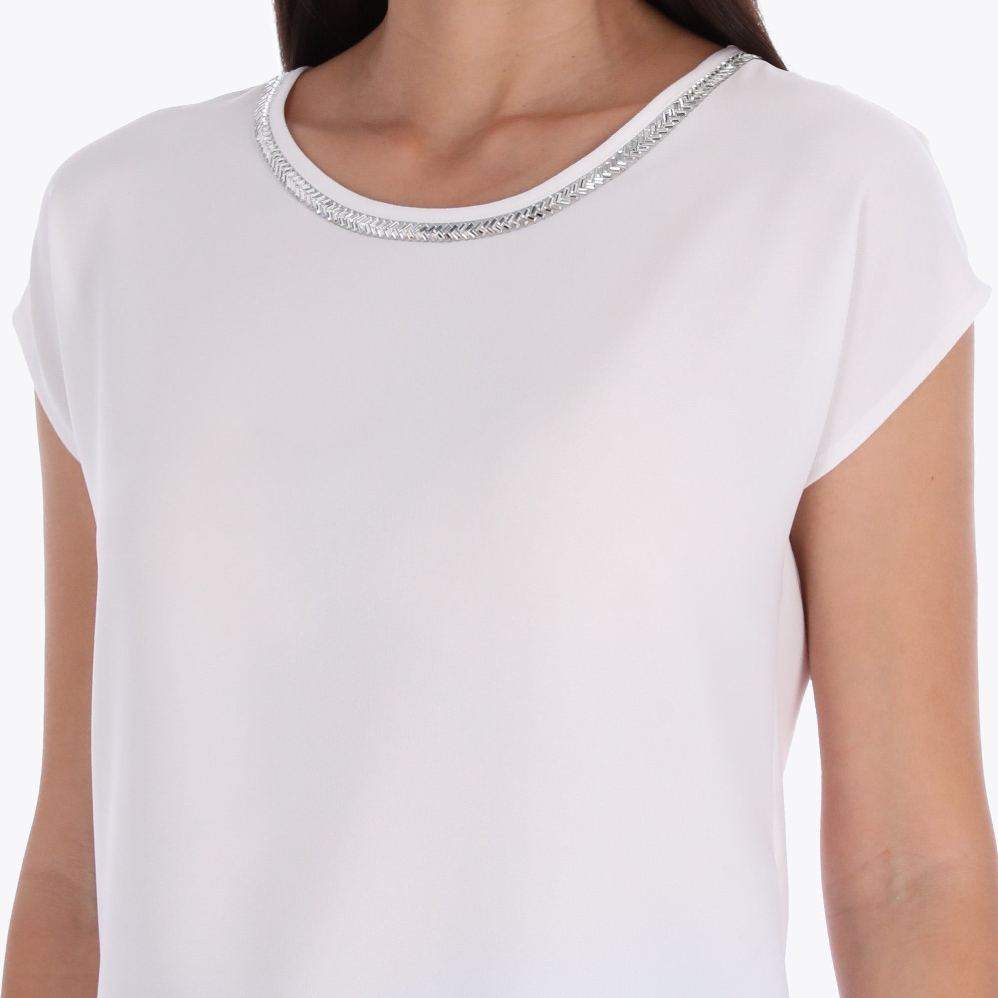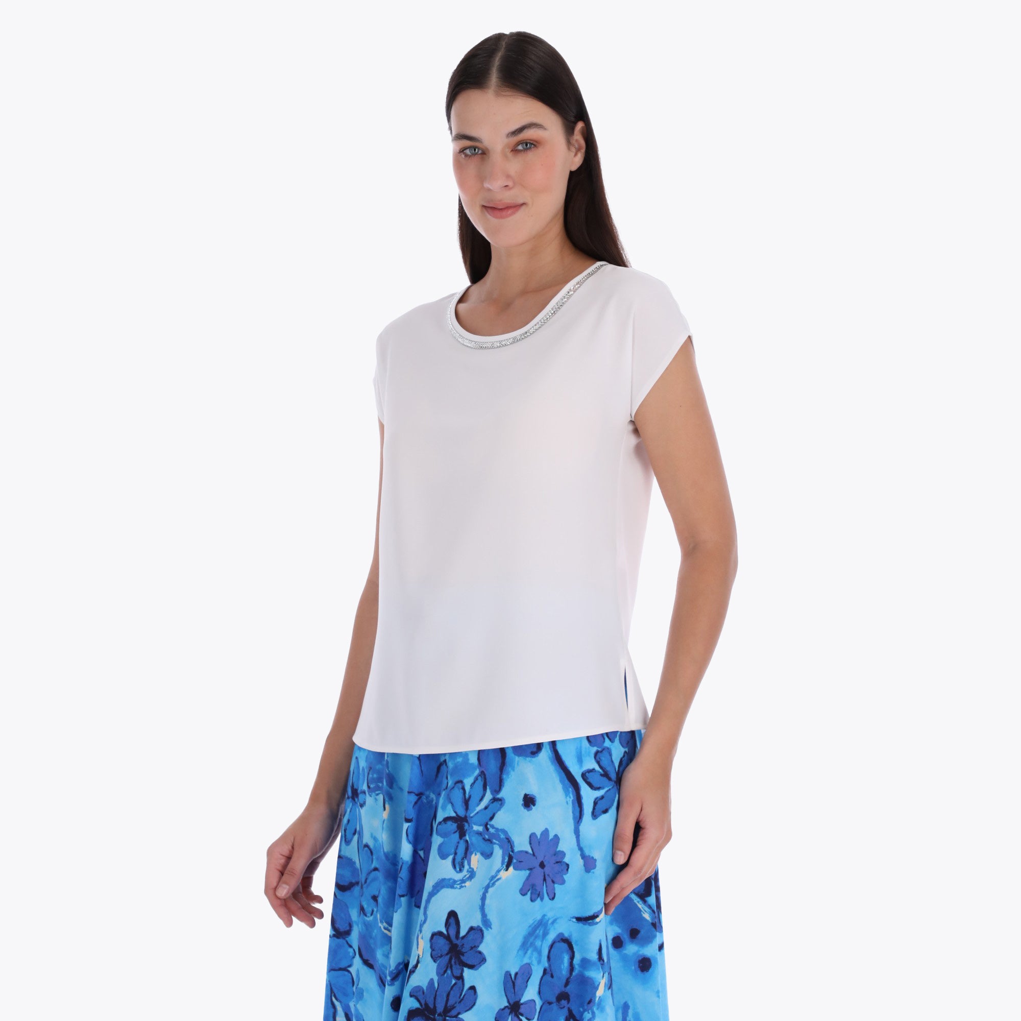 Petite Top Escote Redondo con Aplicación de Brillo Tejido Plano
