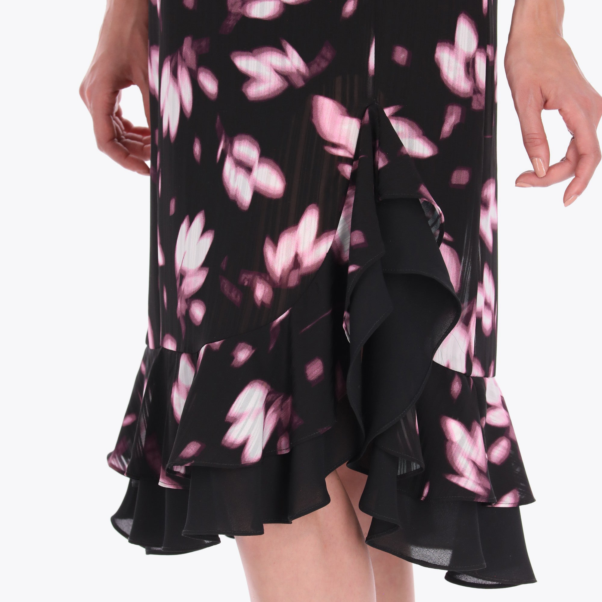 Maxi Vestido con Escote en "v" con Doble Olan Tejido Plano