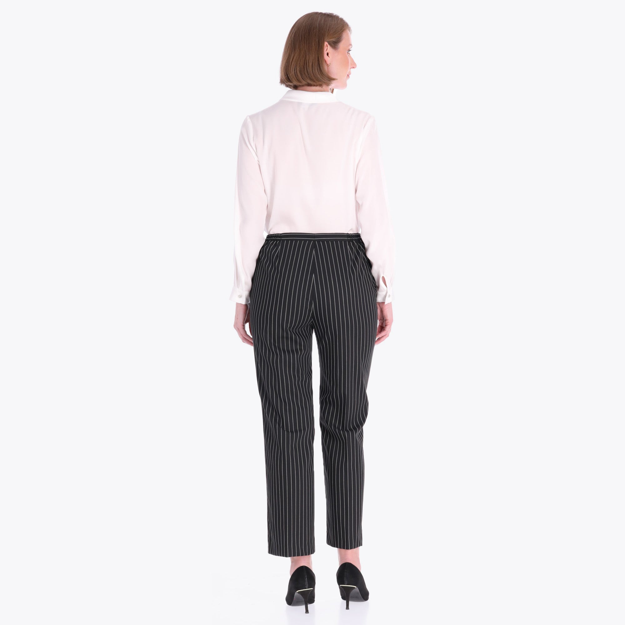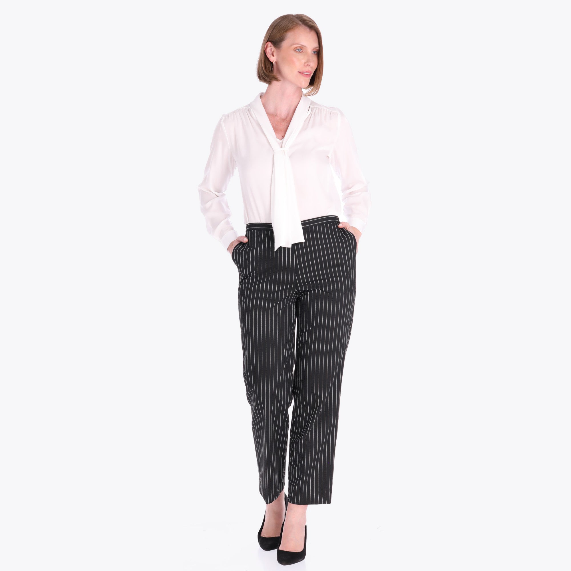 Pantalón en Raya de Gis Elástico al Costado y Bolsas Tejido Plano